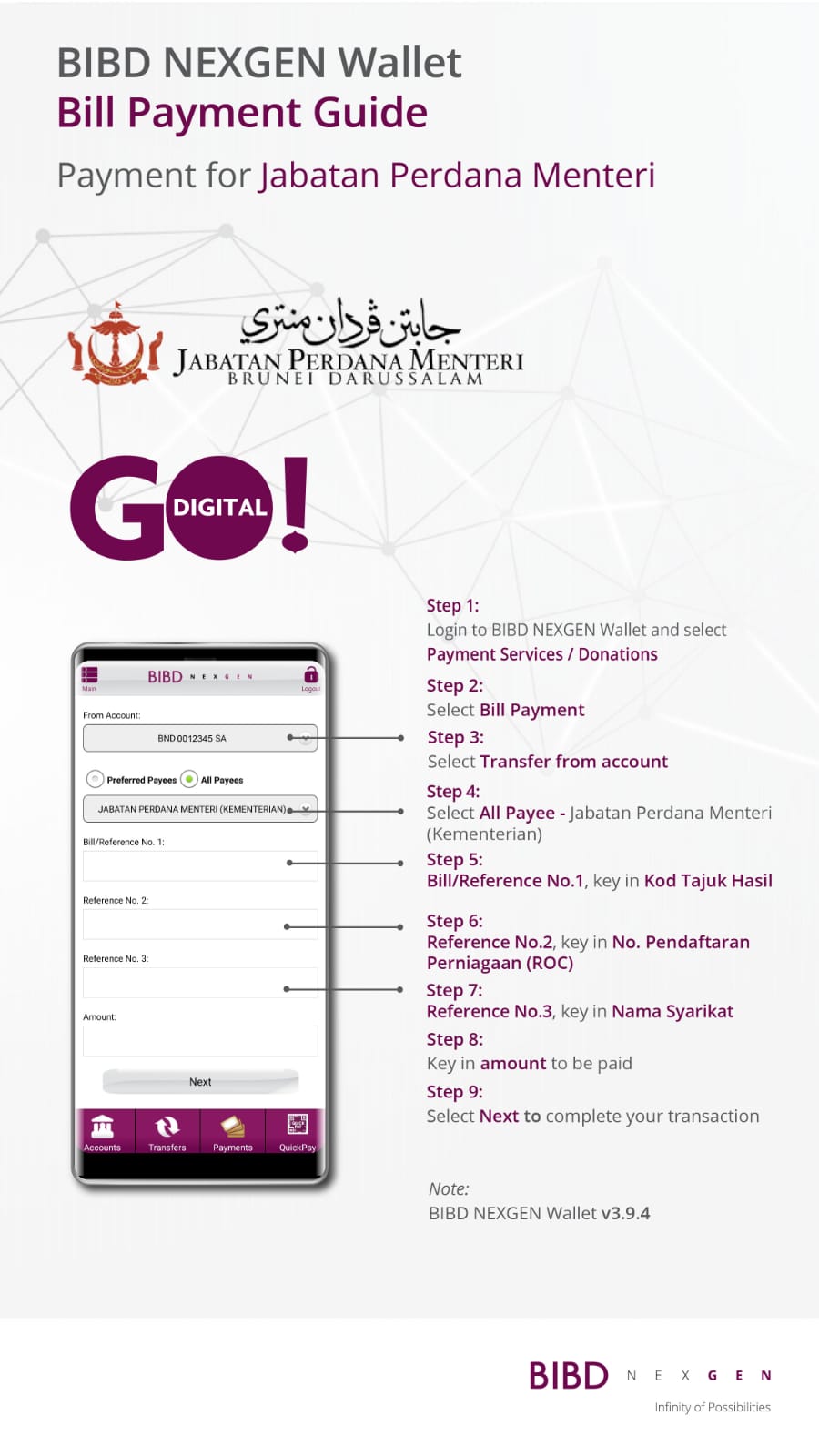 Note : Fees and submission as per details in the Pelita Brunei Ad